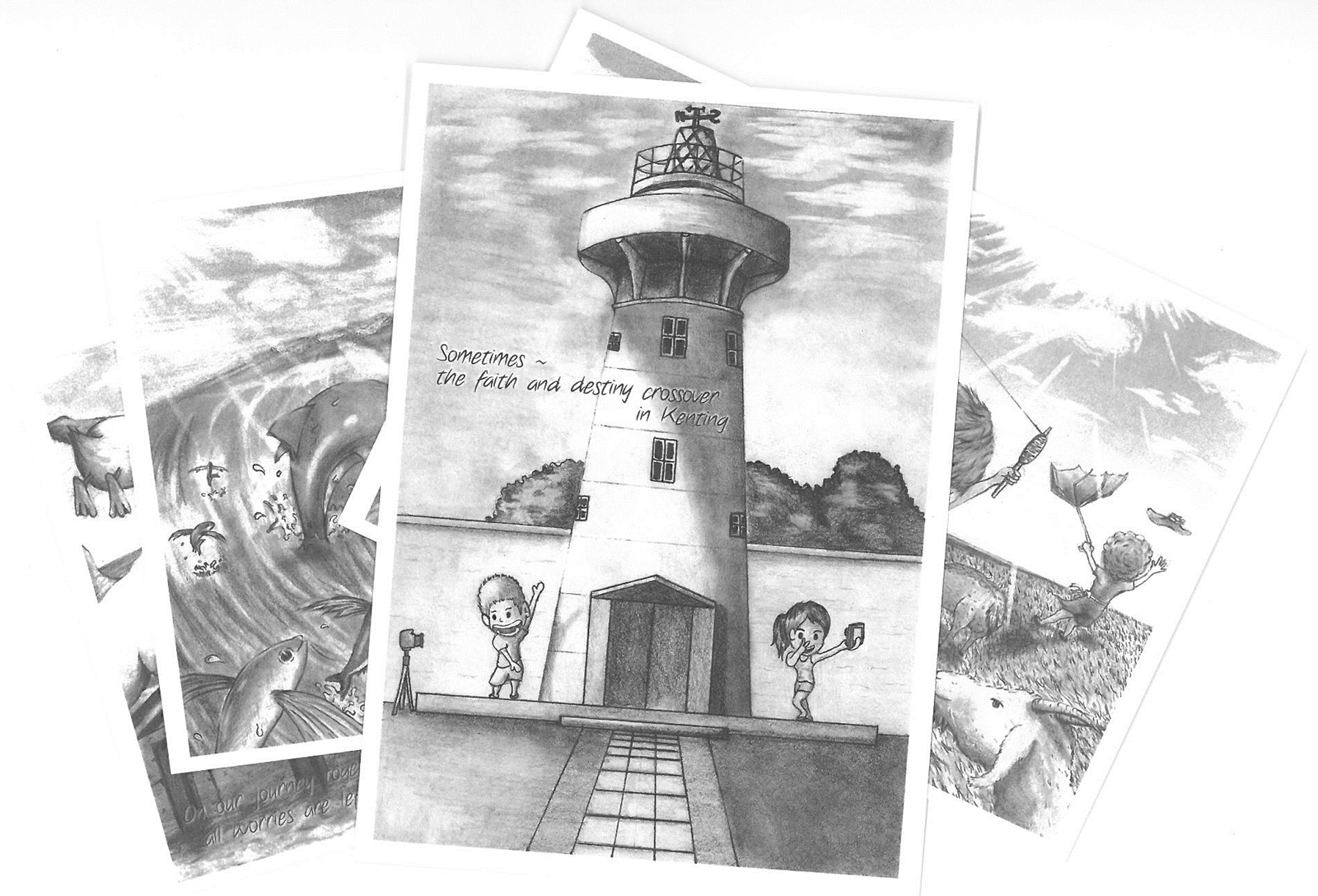 吃過午飯,走到咖啡室,在音樂伴隨下看書,我肯定了咖啡與閱讀,簡直是絕配,一坐就坐到日落。天夠黑了,是時候走上「出火特別景觀區」,體驗夜間出火,燒爆谷、燒煙花、燒蕃薯。嘩!這裡真熱鬧!隨後,走進夜巿品嚐道地晚飯 — 掃街(小食),偶然發現在墾丁大街的一間小舖前,一位一身古銅色的年青人,說話卻温柔且帶點文化氣質,正透過售賣漫畫名信片,向眾人說故事。這些故事都是年青人在墾丁經歷的,每一張漫畫都在訴說一個不同的故事。我沒有理會旁人的反應,在細聽,在細思,在細想,不知不覺就聽了數十分鐘。作者用漫畫和文字,一點一畫地串連起來,一幅圖畫,一句說話扣人心弦。心想必定要買下來留為記念,更重要是很想藉此給年青人一點支持,讓他的夢想可以延續。
