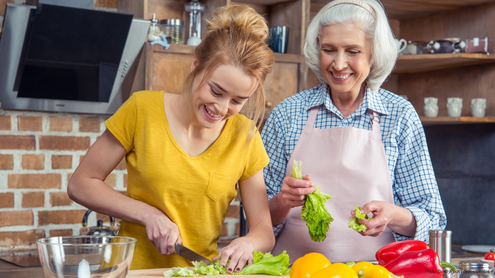 「味道不錯,你也吃吧。」小明夾了一塊黏著辣椒醬的苦瓜送到外婆嘴裡。